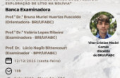 No dia 12 de dezembro, o discente Vitor Cristian Maciel Gomes, apresentará o TCC intitulado: “TRANSIÇÃO ENERGÉTICA A QUALQUER CUSTO? A luta das comunidades de Nor Lípez frente...